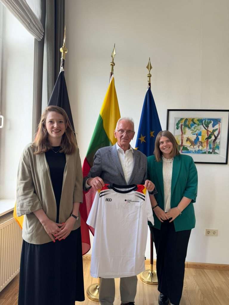 Darüber hinaus führte er Gespräche mit der Deutschen Botschaft und der AHK Deutsch-Baltischen Handelskammer in Vilnius. Ein sportliches Highlight der Reise war der Besuch des WM-Qualifikationsspiels Litauen gegen die Niederlande in Kaunas. Ebenso durfte ein Treffen mit unserem langjährigen Unterstützer beim Transport von Hilfsgütern nach Litauen, Peter Girg – zugleich Mitglied des Deutsch-Litauischen Stammtisches – nicht fehlen.